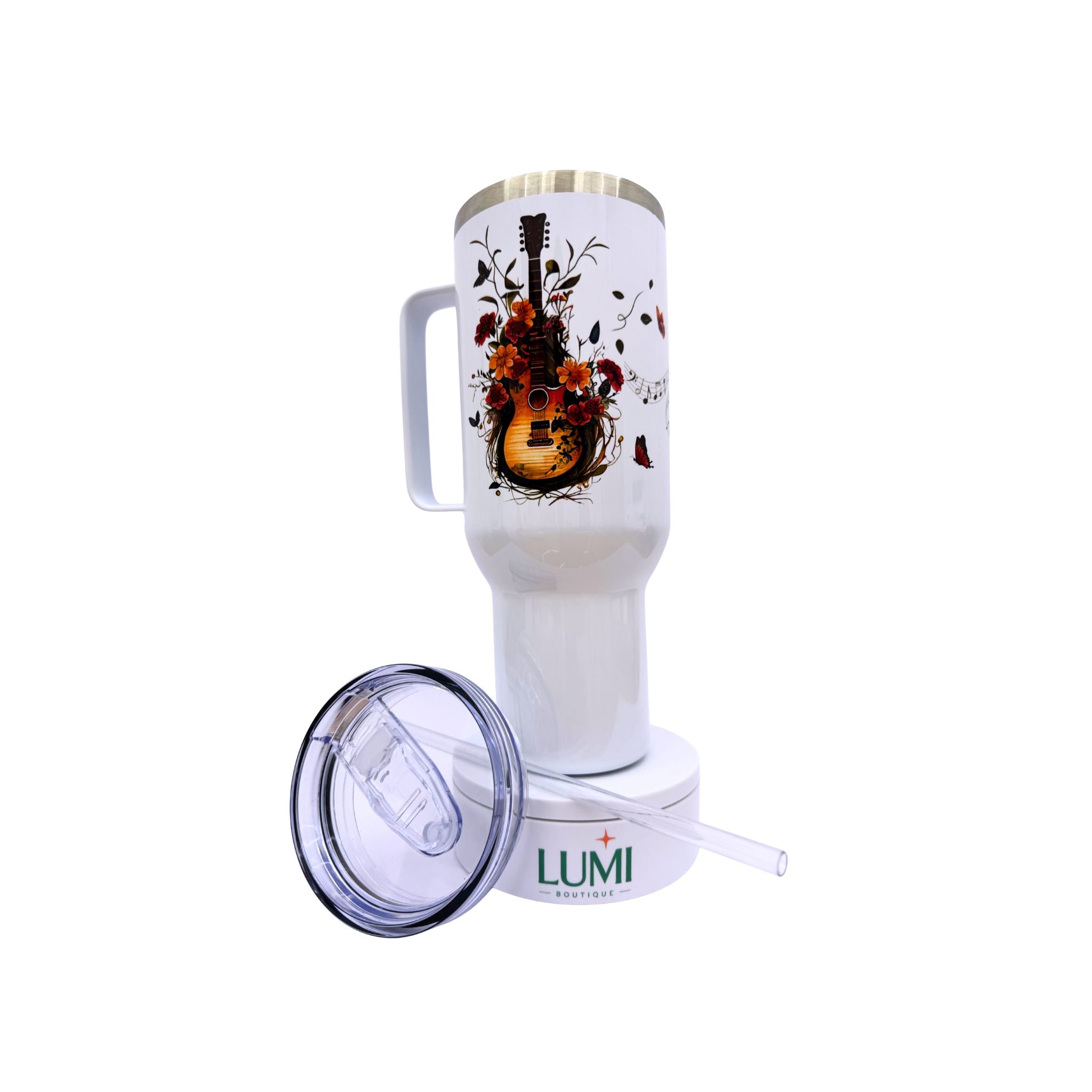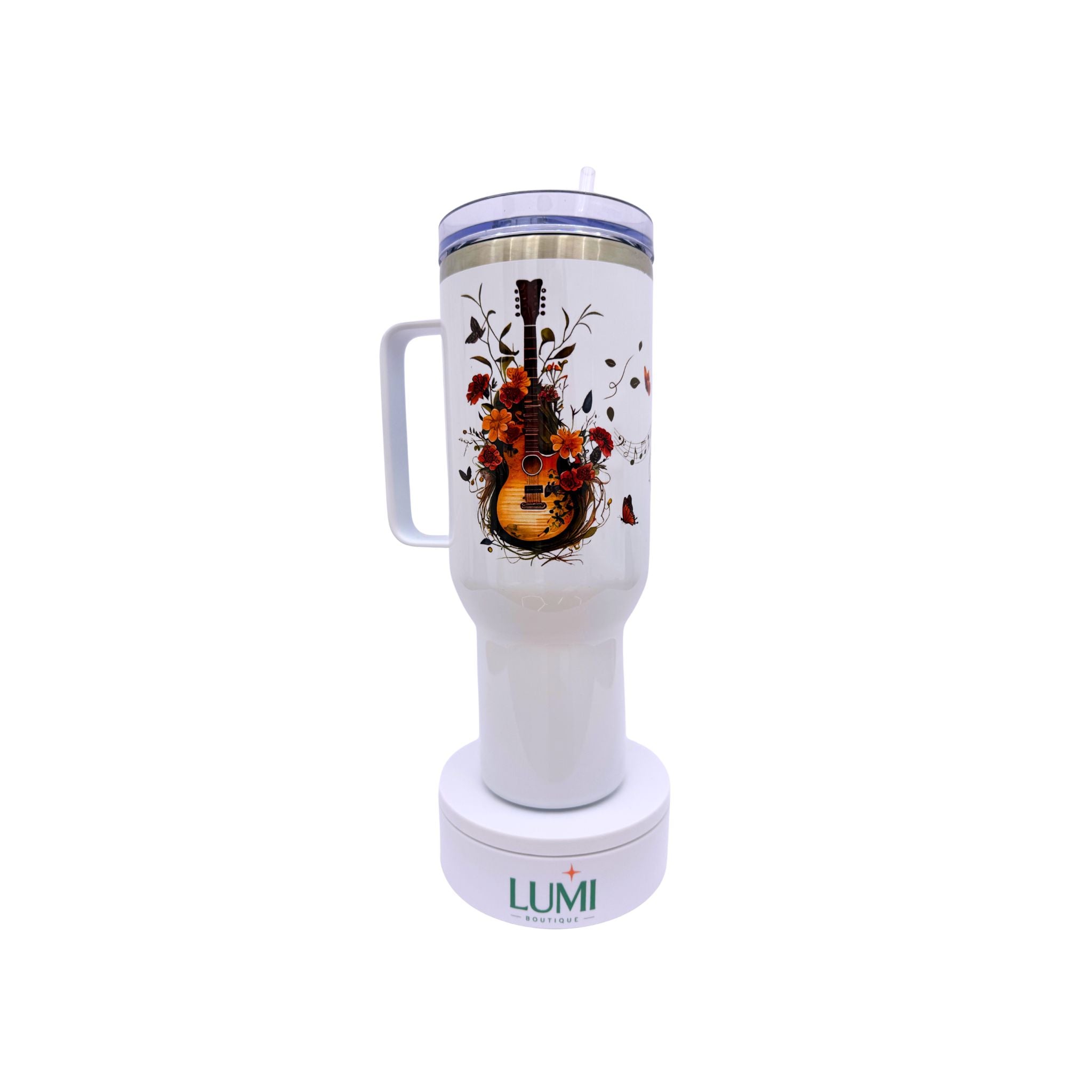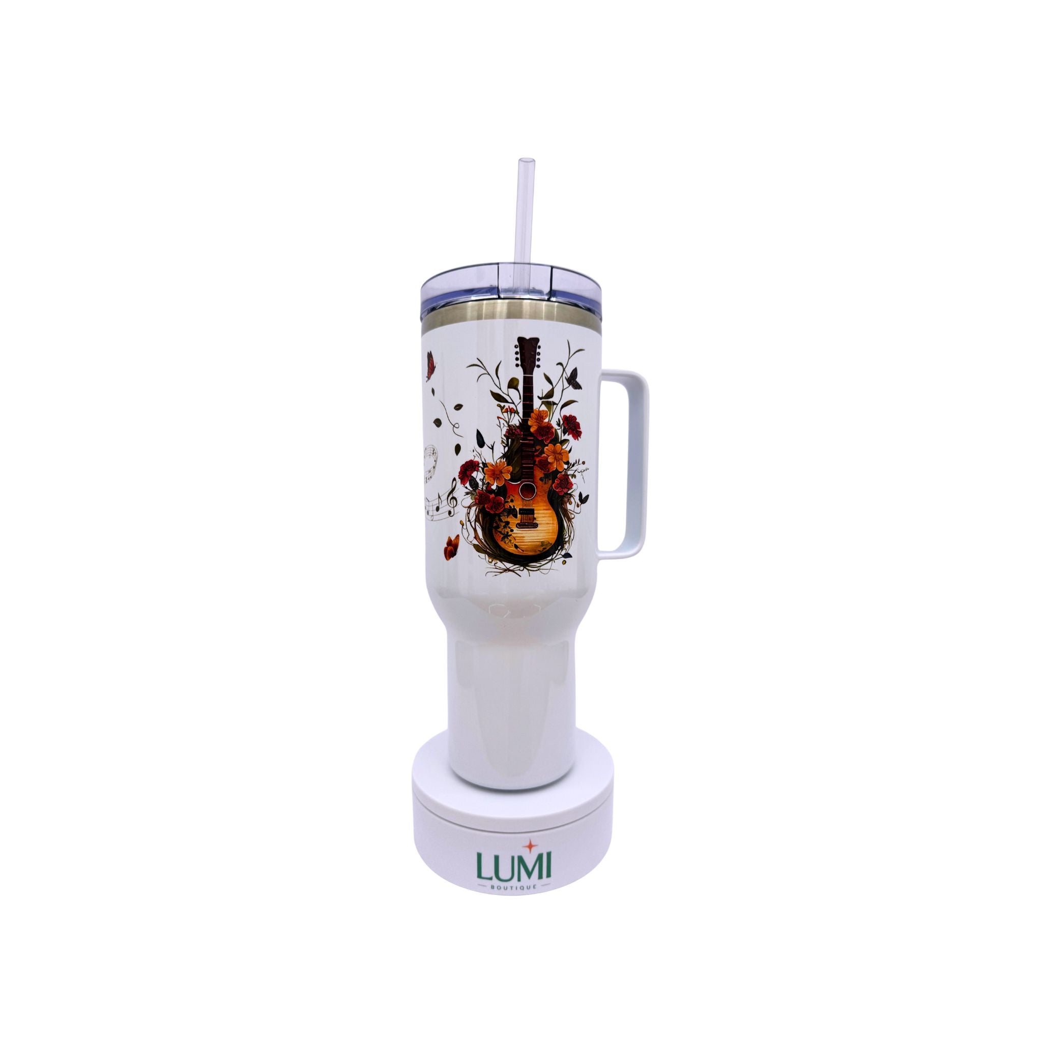 ✨Guitar and floral design.✨Deluxe stainless steel 40oz custom-printed tumbler, sliding lid and straw. Stylish, durable and designed to make every...