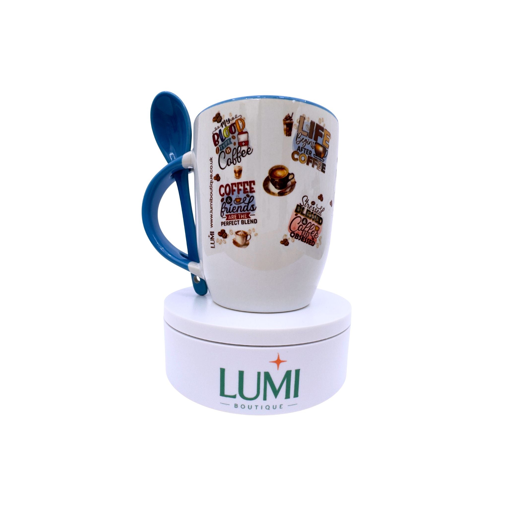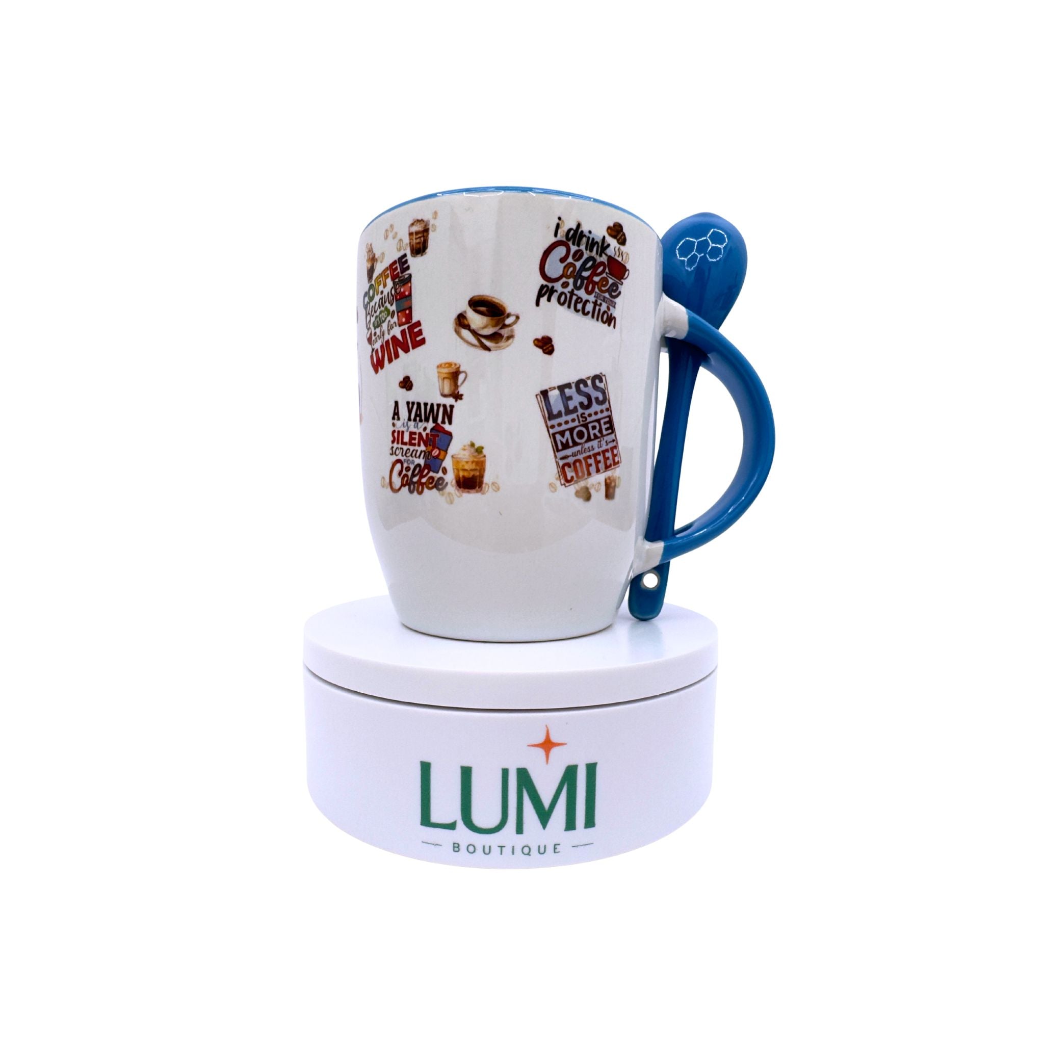 ✨A woman holding a coffee and motivational quotes design.✨Elegant and practical light blue two-tone mug with spoon 12oz.✨Add a splash...