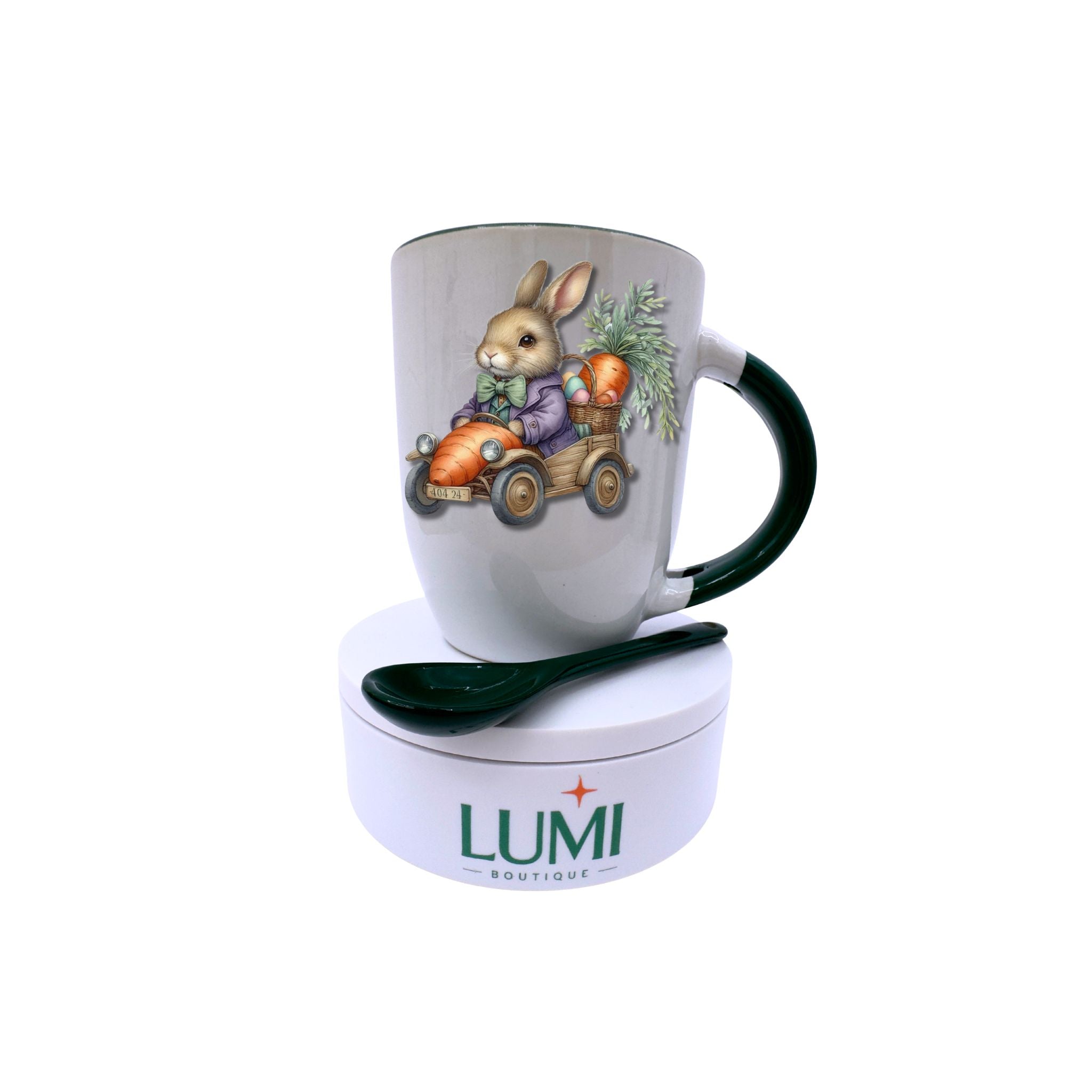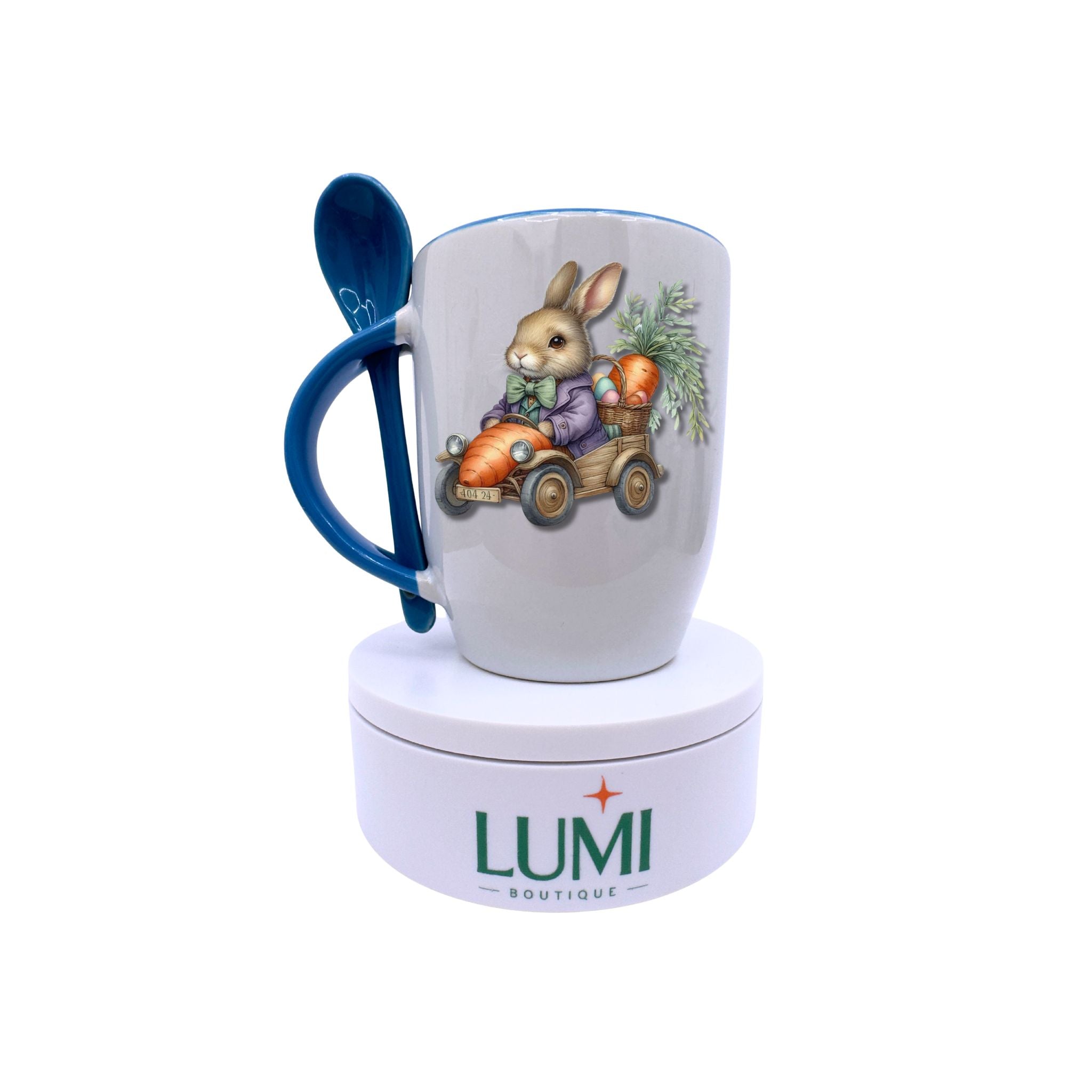 Elegant mug with a cute bunny in a carrot car design 12oz