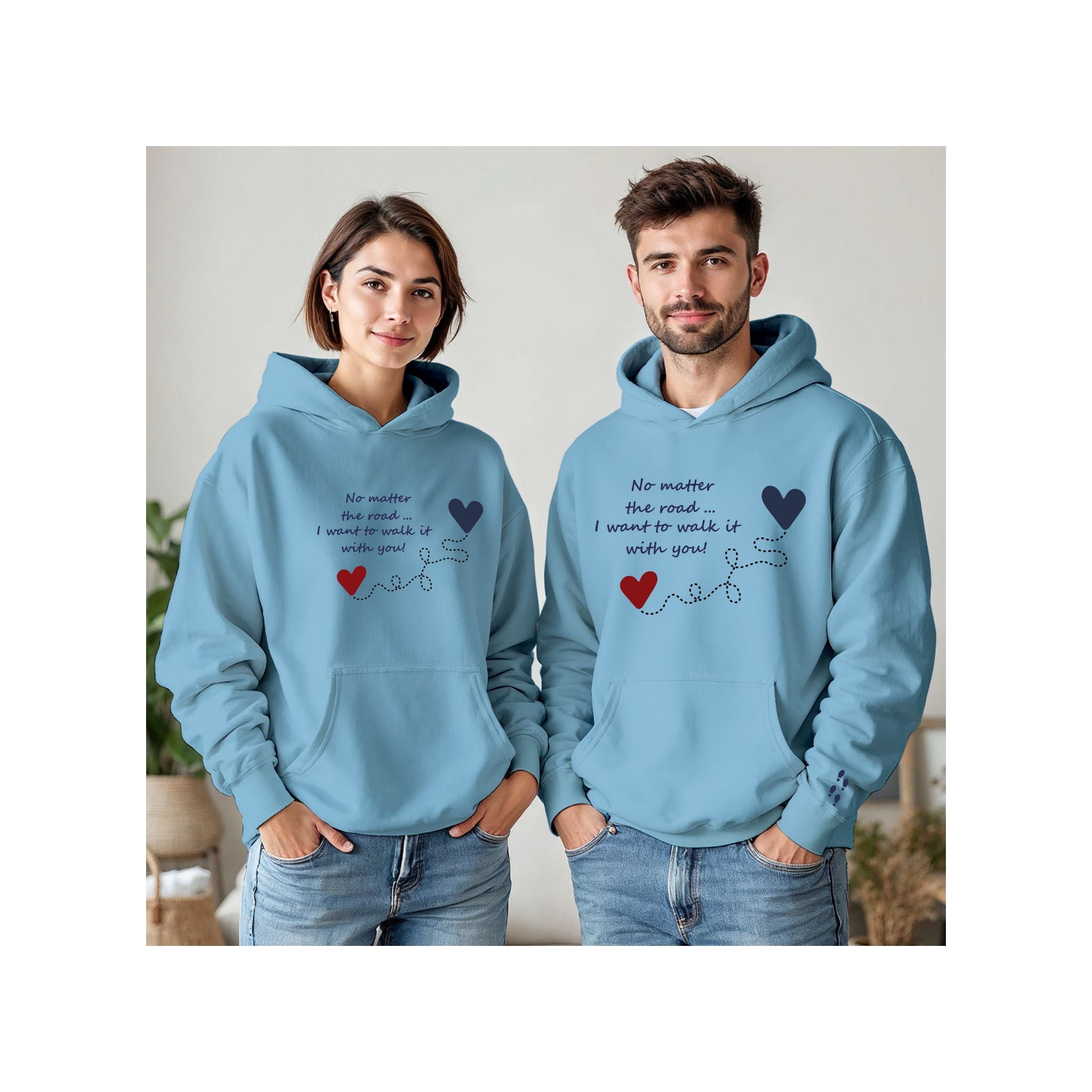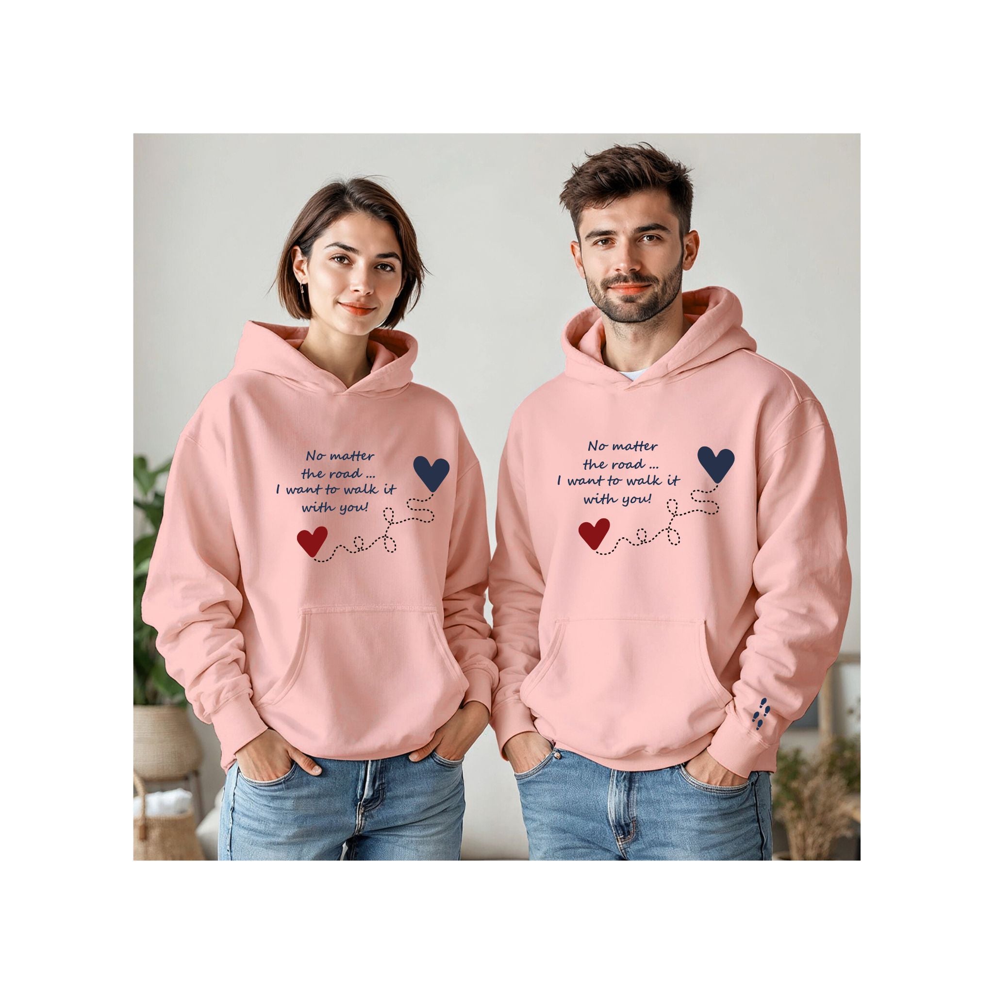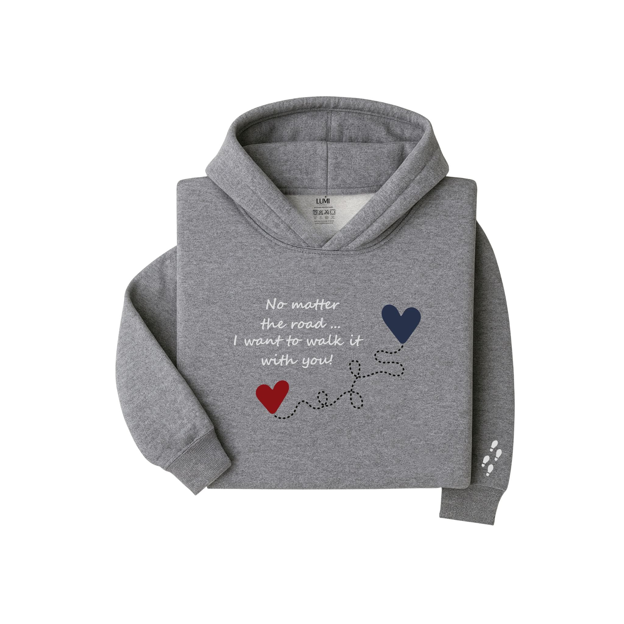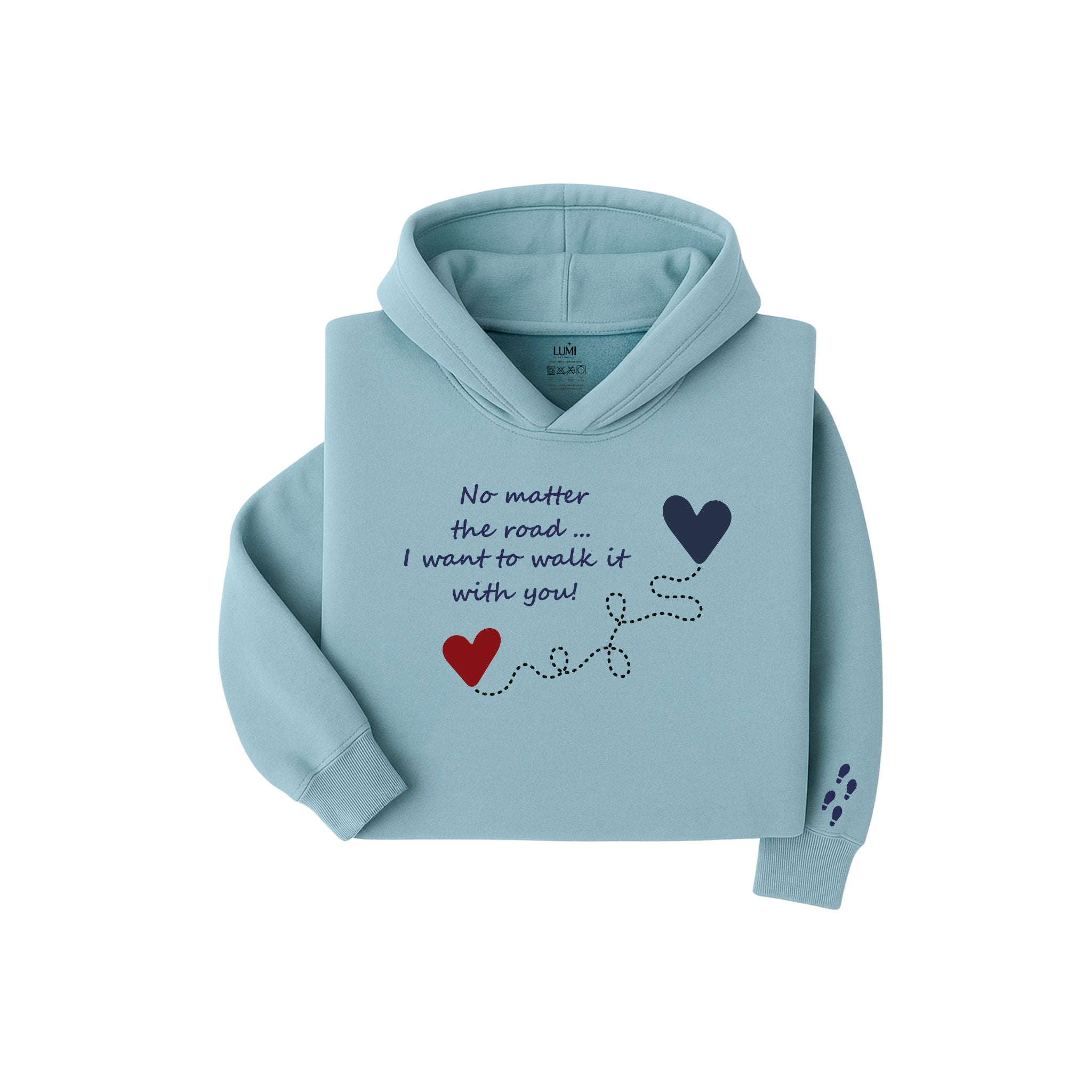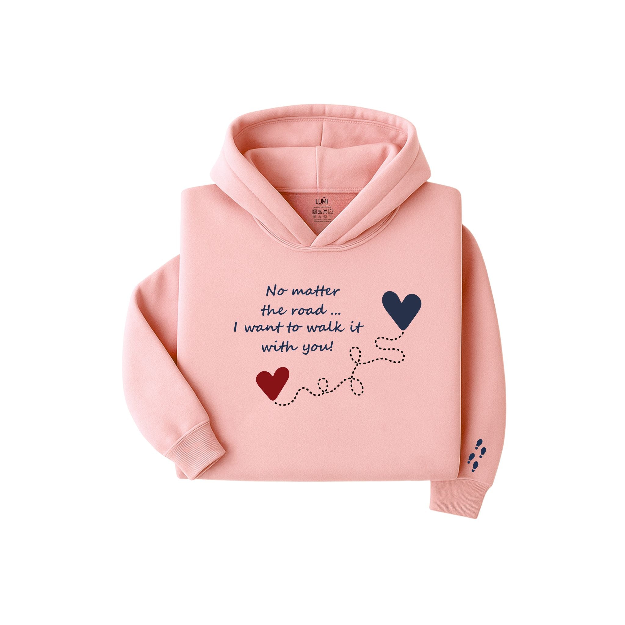 🎨 It features the phrase: "No matter the path... I want to walk it with you!", finished with a print of intertwined hearts and a sublimated footprint detail on the sleeve