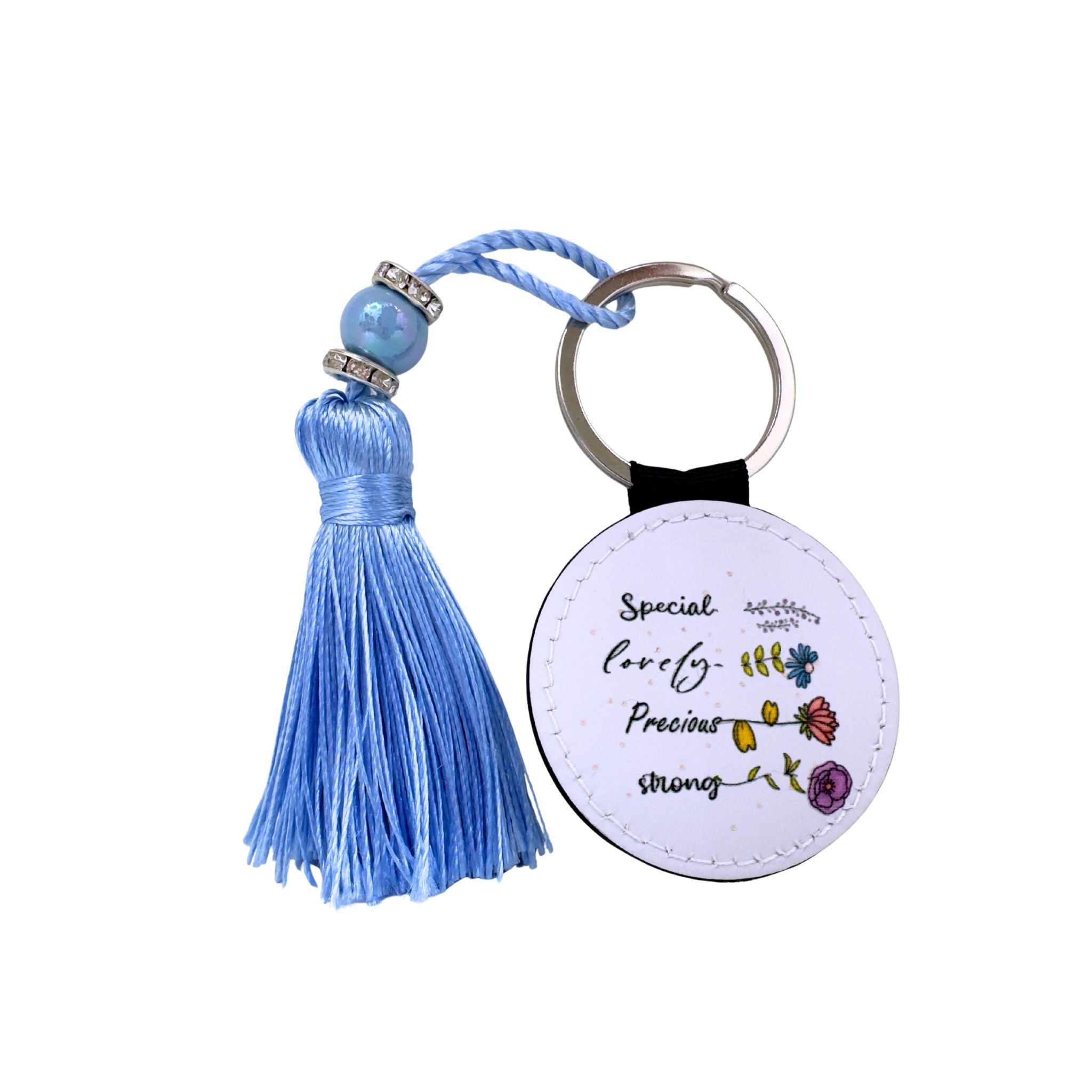 Round Keyring with tassel and motivational quote design