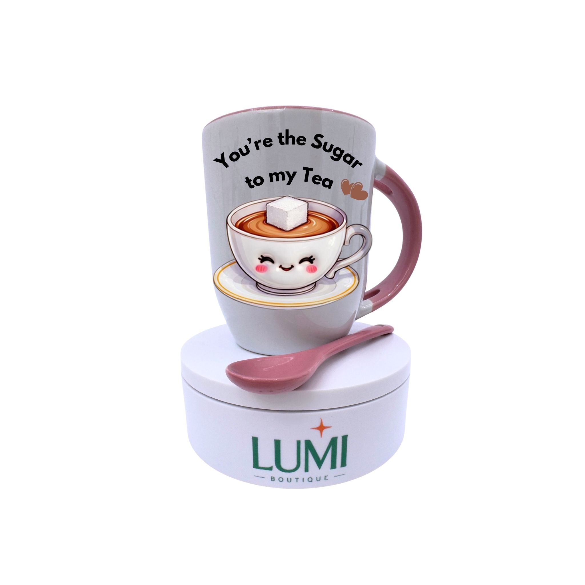You’re the Sugar to My Tea – Two-Tone Mug with Spoon 12oz